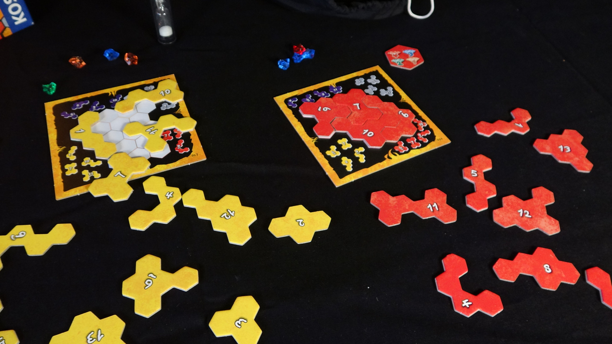 Bei diesem Spiel geht es darum, die vorgegebenen Flächen auf den Aufgabenkarten schnellstmöglich mit den Legeteilen zu bedecken. Die sechseckigen Puzzleteile müssen durch geschicktes Drehen und Wenden passgenau platziert werden. Dank der einfachen Regeln kann der Knobelspaß sofort beginnen und sorgt für unterhaltsame Spielrunden.