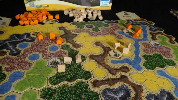 In Kingdom Builder erschafft ihr euer eigenes Königreich. Sobald die Spiellandschaft zusammengestellt ist, geht es los. Siedelt an gewinnbringenden Orten und sichert euch die begehrten Sonderaktionen, bevor es die Mitspieler tun!